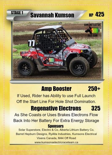 Savannah Kumson made her mark on the 2023 season as the First Female Electric SXS Racer in the world. Savannah returned for her second season with one goal, to win. She did just that, taking the 2024 Triple Crown UTV SxS Mini Production title. Her explosive starts and relentless consistency helped her make the jump from contender to champion, making it clear she’s a threat every time she lines up.